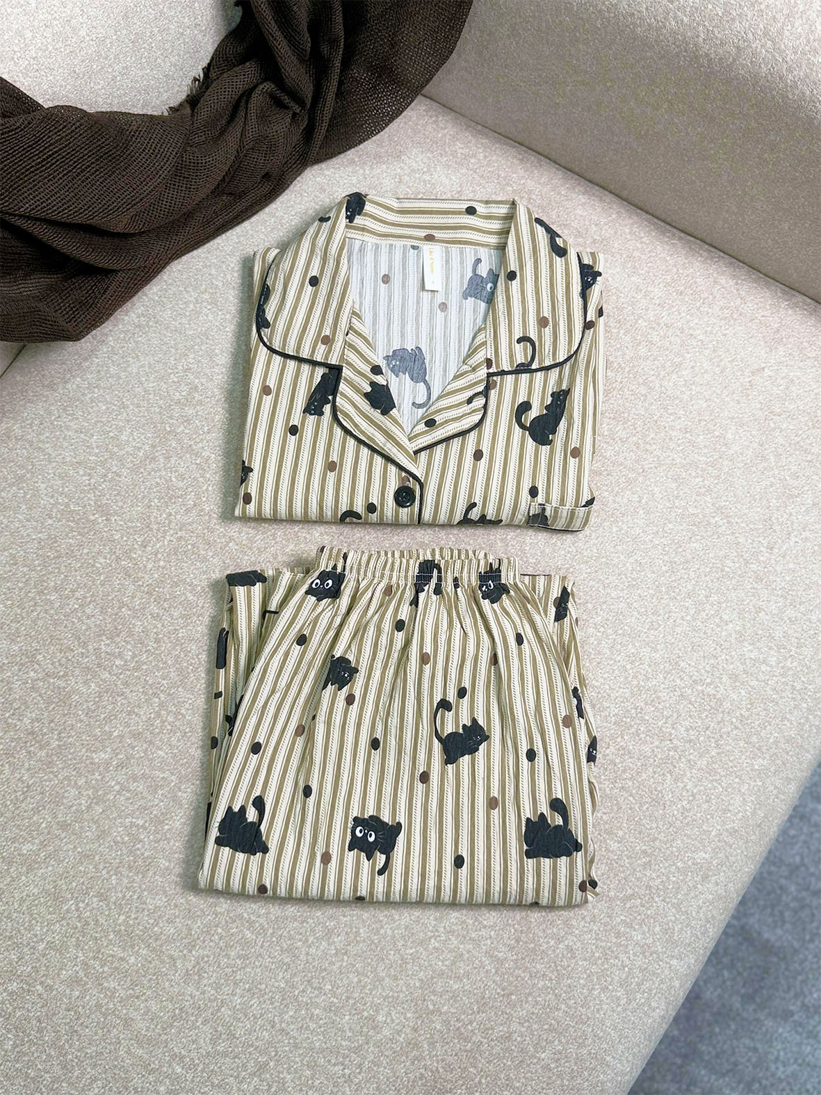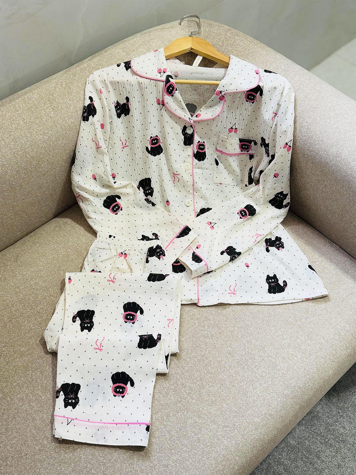 ست پیراهن و شلوار زنانه وارداتی طرح گربه و گیلاس