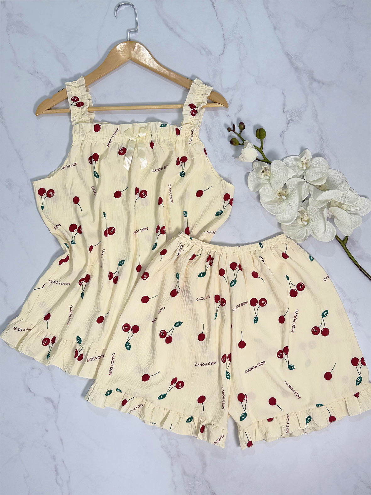 ست تاپ و شورتک وارداتی طرح گیلاس