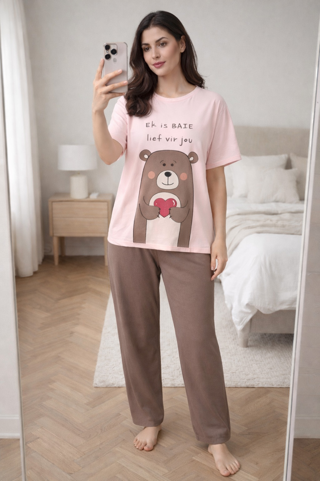 ست تیشرت و شلوار و شورتک وارداتی طرح خرس قهوه ای