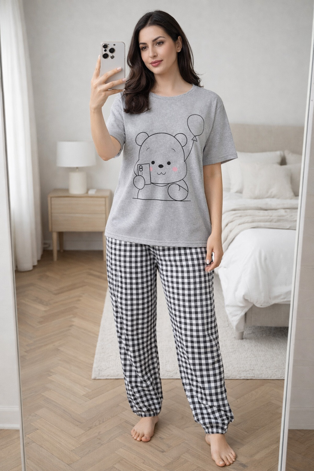 ست تیشرت و شلوار و شورتک وارداتی طرح پو